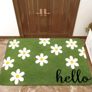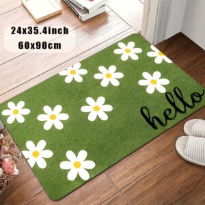 1pcs Entrance Floor Mat Hello Letters Fresh White Daisy Flowers Print Pattern Mat For Indoor and Outdoor Entrance Floor Mats