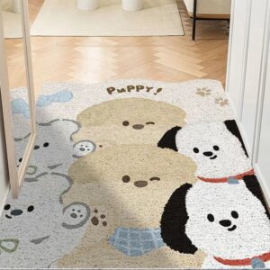 - Material: Made from high-quality PVC, this rug is comfortable, durable, and eco-friendly. It features strong water absorption, excellent dirt resistance, and retains its bright beige color and cute dog pattern for a long time. The non-slip backing ensures stability and safety on any surface.